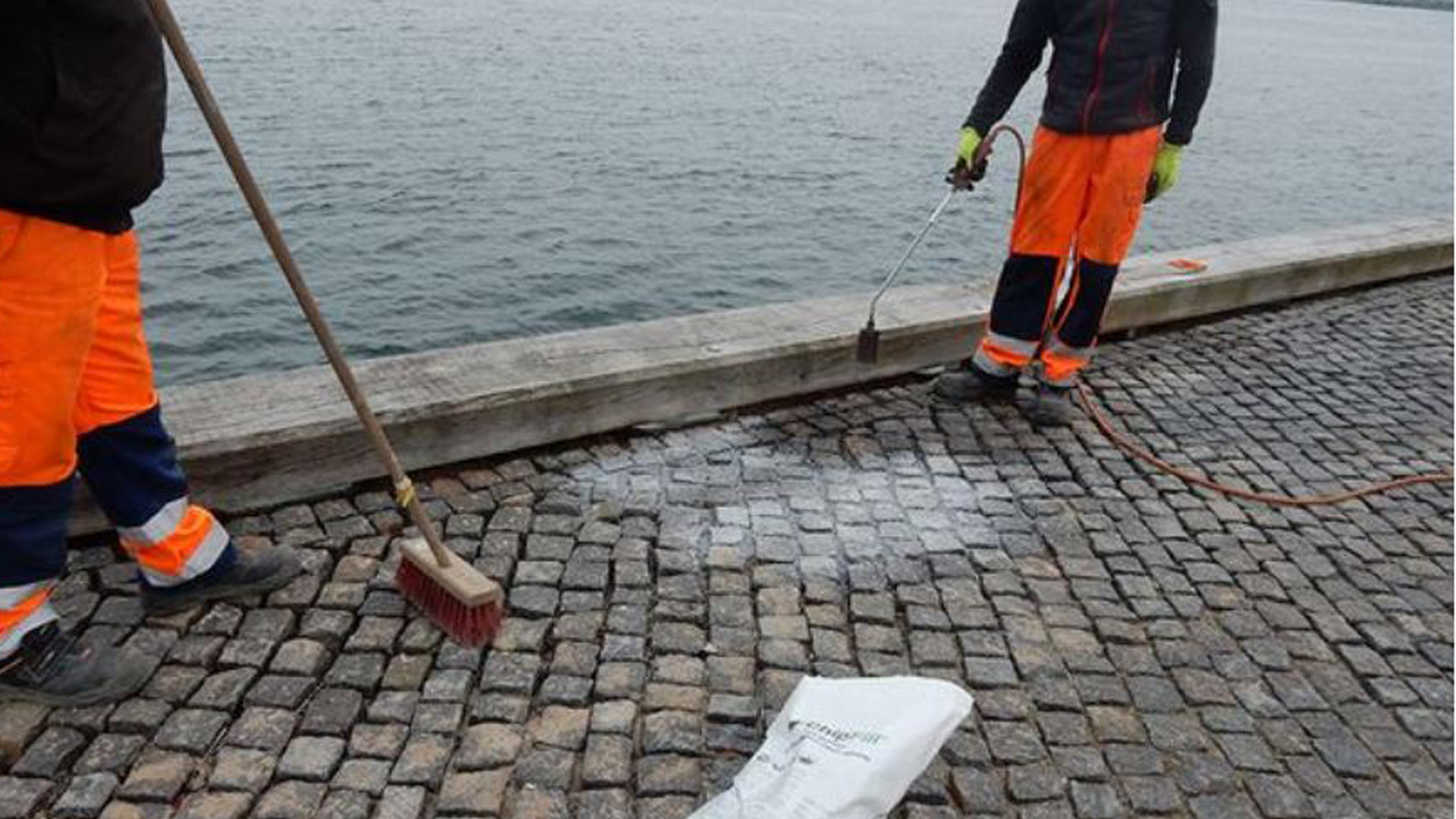 ChipFill® lässt sich ohne großen Aufwand verarbeiten - Sie benötigen nur einen Straßenbesen und einen Gasbrenner.