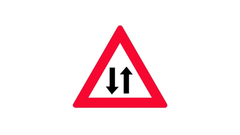 Dieses Zeichen zeigt an, dass auf Straßen, auf denen sonst nur in einer Richtung gefahren wird, mit Gegenverkehr zu rechnen ist.