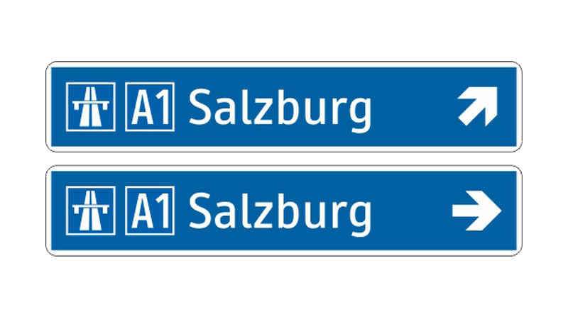 Diese Zeichen zeigen im Bereich einer Kreuzung den Weg zu einer Autobahn oder Autostraße an. Sie dürfen auch nur auf der linken Straßenseite angebracht werden, wenn dies eine bessere Erkennbarkeit erwarten läßt.