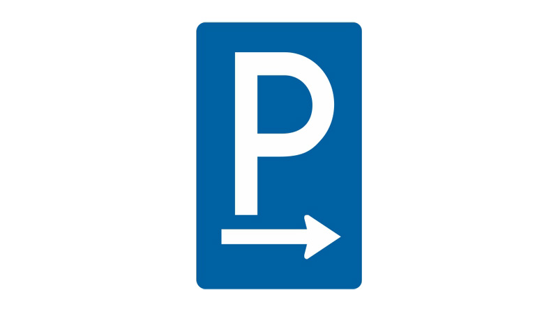 § 53/1 b StVO „ZUM PARKPLATZ“Dieses Zeichen weist auf einen Parkplatz hin.