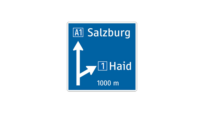 Diese Zeichen zeigen den weiteren Verlauf einer Autobahn oder Autostraße und die nächste Ausfahrt an. Ein Zeichen nach
