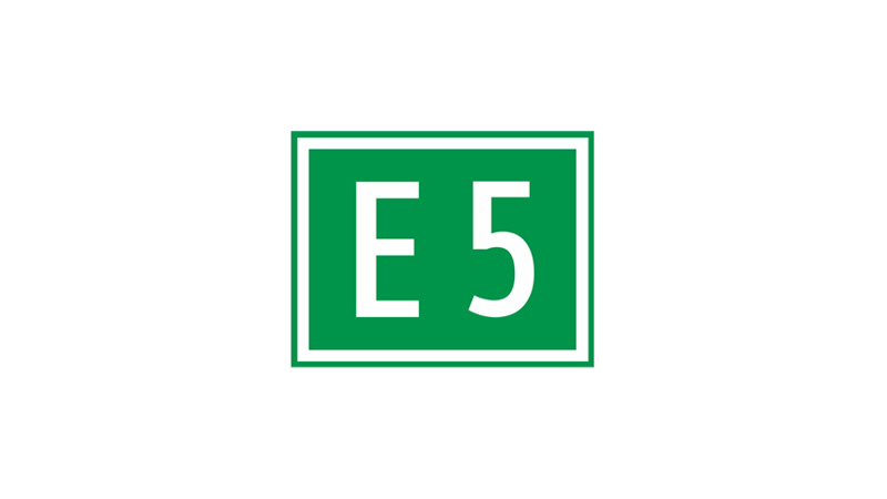 Dieses Zeichen zeigt den Verlauf eines internationalen Hauptverkehrsweges an. Ein internationaler Hauptverkehrsweg ist eine Vorrangstraße.