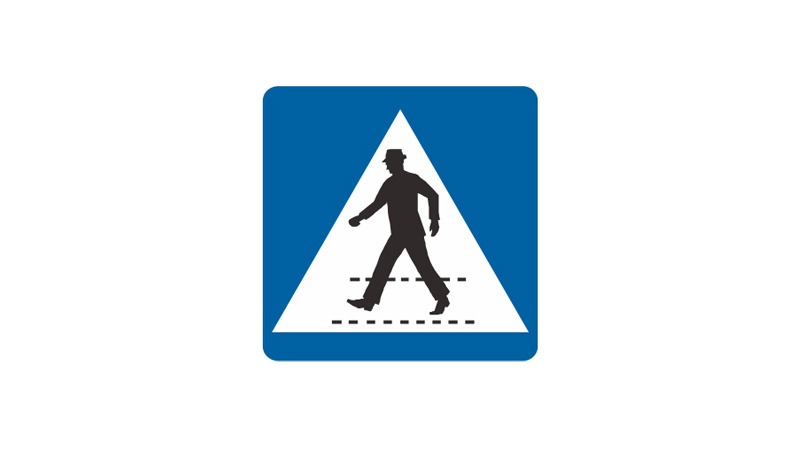 Dieses Zeichen kennzeichnet einen Schutzweg (§ 2 Abs. 1 Z 12), bei dem ständig betriebene Lichtzeichen zur Regelung des Verkehrs oder zur Abgabe blinkenden gelben Lichtes nicht vorhanden sind. Es ist beim Schutzweg anzubringen, und zwar auf Einbahnstraßen an beiden Seiten, auf anderen Straßen an der rechten Seite. Wenn jedoch die Verkehrssicherheit dadurch nicht beeinträchtigt wird, ist statt der seitlichen Anbringung die Anbringung des Zeichens über dem Schutzweg zulässig.