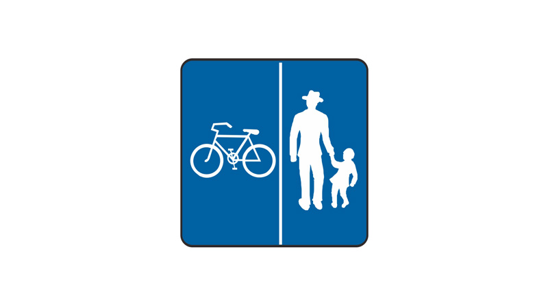 Diese Zeichen zeigen einen Geh- und Radweg an, der von Radfahrern benützt werden darf, aber nicht muss, und zwar ein Zeichen nach a) einen für die gemeinsame Benützung durch Fußgänger und Radfahrer bestimmten Geh- und Radweg und ein Zeichen nach b) einen Geh- und Radweg, bei dem der Fußgänger- und Fahrradverkehr getrennt geführt werden, wobei die Symbole im Zeichen nach b) der tatsächlichen Verkehrsführung entsprechend anzuordnen sind (Fußgänger rechts, Fahrrad links oder umgekehrt).