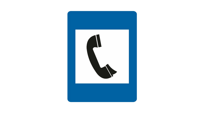 Dieses Zeichen weist auf eine Fernsprechstelle hin. Wenn nötig, ist auf einer Zusatztafel oder mit weißer Farbe auf dem Zeichen selbst in die Richtung der Fernsprechstelle zu weisen und die Entfernung bis zur Fernsprechstelle anzugeben.