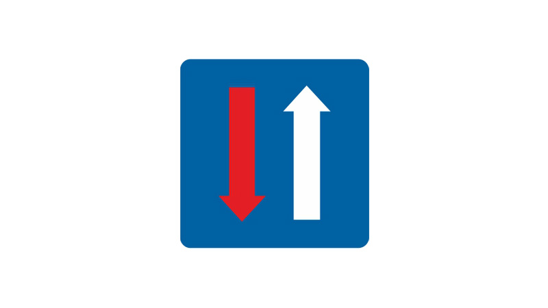 Dieses Zeichen zeigt an, dass der Lenker eines entgegenkommenden Fahrzeuges gemäß § 52 Z 5 zu warten hat.