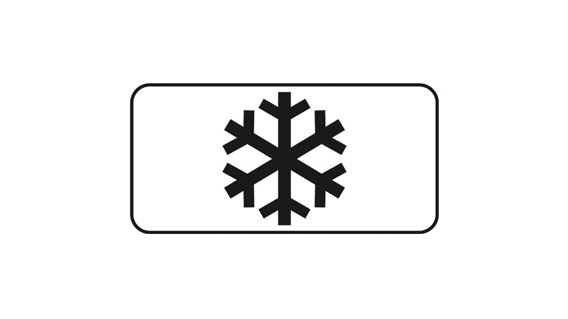 Diese Zusatztafel weist darauf hin, dass das Straßenverkehrszeichen bei Schneelage oder Eisbildung auf der Fahrbahn zu beachten ist.